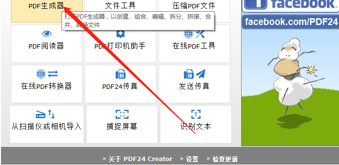 1.首先第一步我们打开软件之后在界面中点击PDF生成器这个功能模块,进入到PDF编辑功能界面当中。