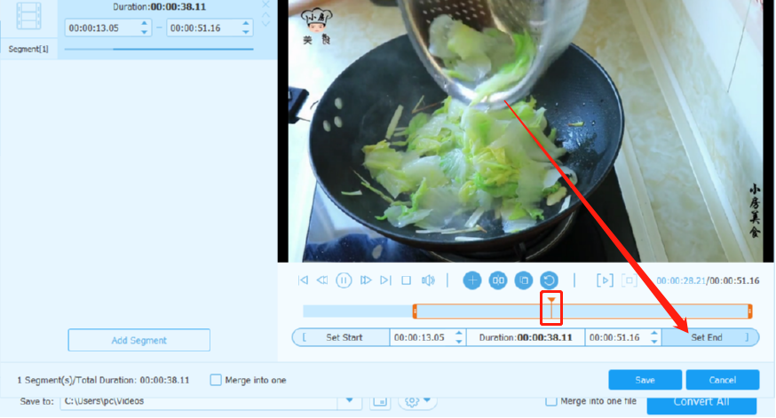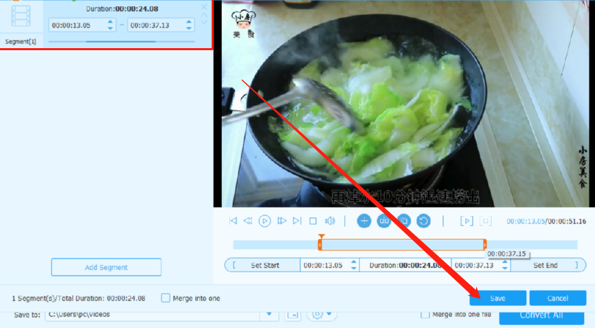 6.选择好剪切视频的开始时间和结束时间之后,我们在界面左上方可以看到剪切之后的视频片段,点击右下角的Save按钮即可保存。