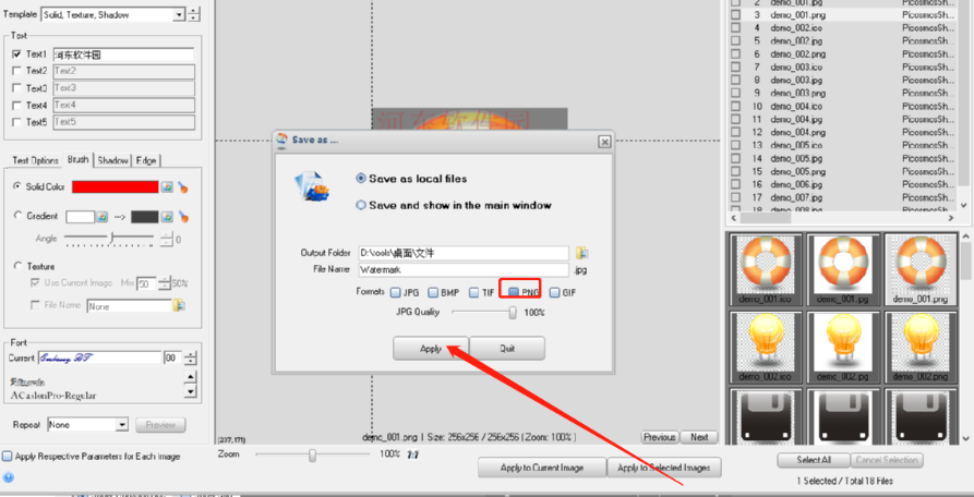 6.最后一步我们选择好水印图片输出的格式之后点击界面中的Apply这个应用按钮就可以将制作好的图片水印给保存下来了。