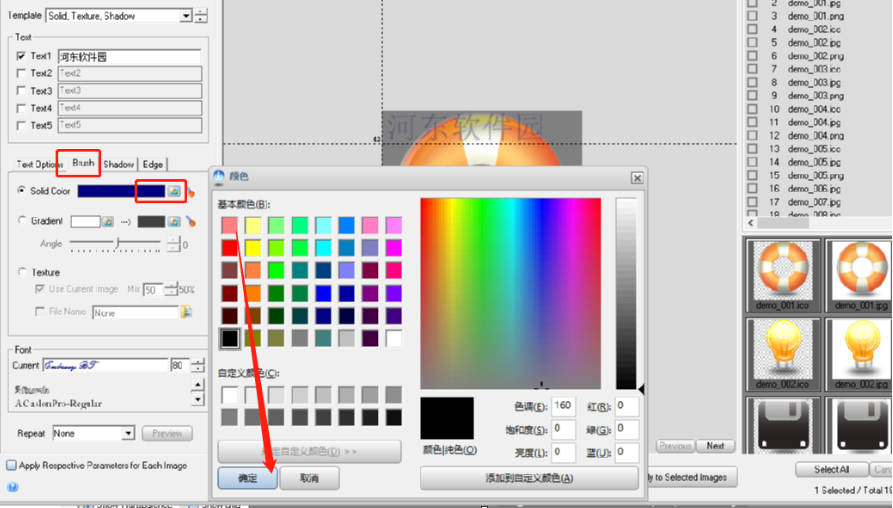 3.另外下一步我们切换到Brush这个模块之后,点击颜色即可打开字体颜色的选择界面,接着我们根据自己的需求来选择想要制作成水印文字的颜色即可。