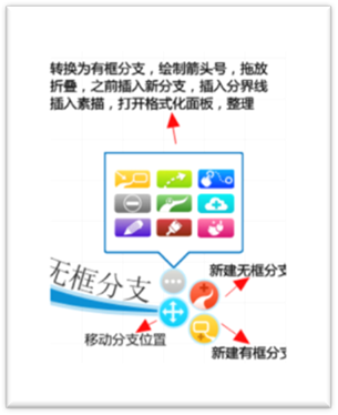 1、一种方法是把鼠标移到主题上面,会出现添加分支的功能按钮,点击中间红色背景的「+」号,创建无框分支;点击周围黄色背景的框号,创建有框分支。分支的方向可以通过按住鼠标左键向左向右拖动创建的方式选择,也可以创建后再通过鼠标移动分支的方向。