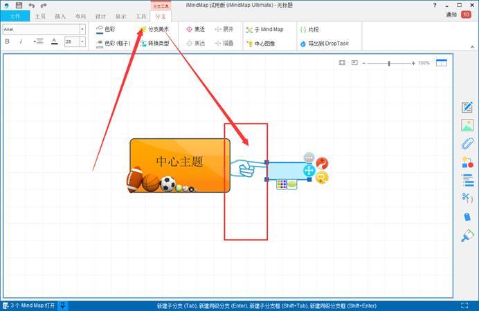 在iMindMap中,我们还可以调整分支的美术,令我们的思维导图更加的好看。分支美术中有很多图案,选择合适的即可。