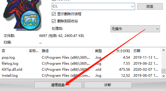 5.最后等到扫描完成我们只需要点击界面下方的清理磁盘这个功能按钮就可以开始强制删除扫描出来的这些文件了。