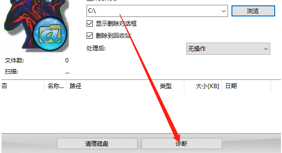 3.点击确按钮之后文件路径就选择完成了,然后我们点击界面中的诊断这个功能按钮可以扫描路径中的不能正常删除的文件。