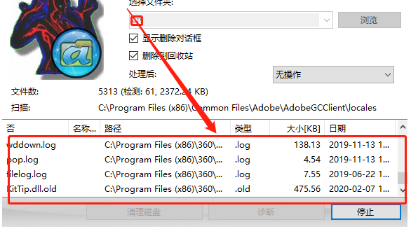 4.开始扫描之后我们在界面的文件列表中就可以看到扫描出来的一些有问题的无法正常删除的文件了,可以看到文件名称以及类型路径等信息。