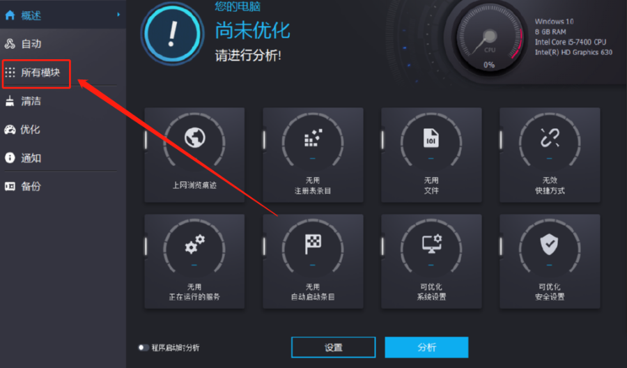 1.首先第一步我们打开软件之后在软件界面的左边列表中找到所有模块这个选项点击进去。