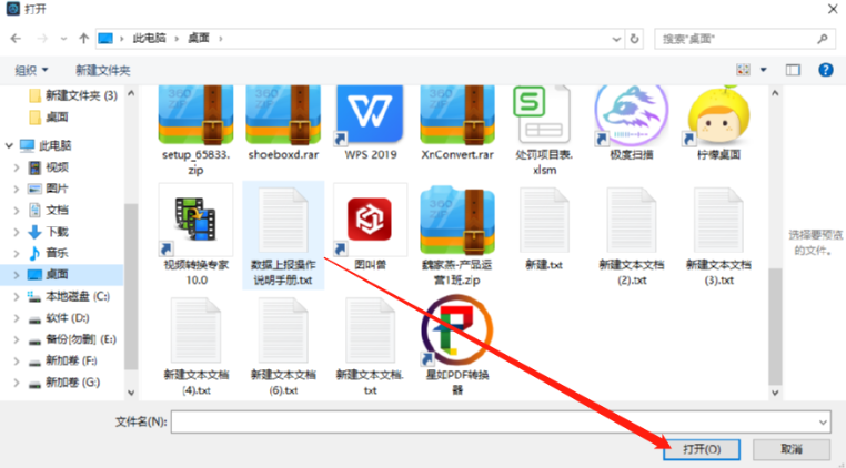 4.点击这个选择文件的图标之后会打开一个选择文件的界面,我们在这个界面中选中想要加密的文件之后点击打开按钮。