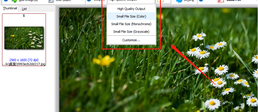 3.点击打开按钮之后我们在界面中就可以看到选择的图片了,然后在输出选项中可以选择图片输出储存的质量。