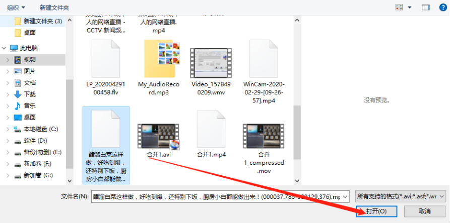 2.点击添加文件按钮之后就会打开一个选择视频文件的界面了,在这个界面中我们选中目标视频文件之后点击打开按钮。