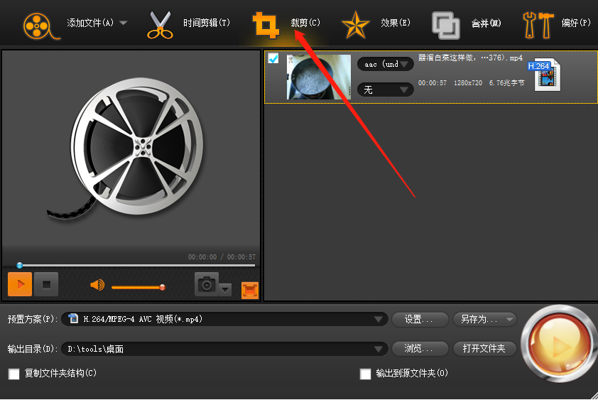 3.点击打开按钮选择的视频就成功加载到软件中了,然后我们点击软件界面上方的裁剪功能图标,进入到裁剪功能界面。