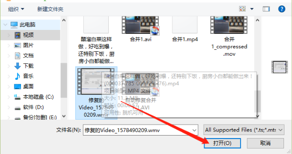 2.点击添加文件之后下一步在打开的选择文件界面中,我们选中目标视频文件之后点击右下角的打开按钮即可。