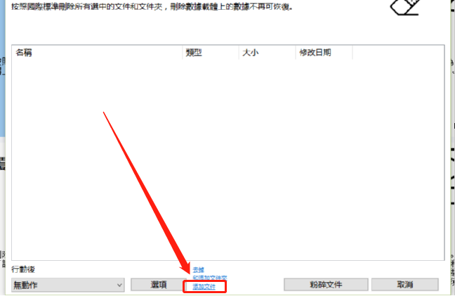 2.点击进入到永久删除文件这个功能界面之后,我们点击界面下方的添加文件这个选项,准备添加想要永久删除的文件。