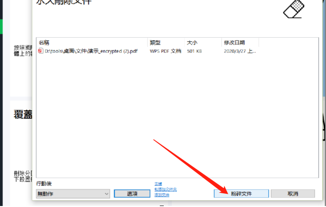 5.设置好自己想要的删除方法之后,我们就可以点击界面右下角的粉碎文件这个功能按钮来开始永久删除选择的这个文件了。