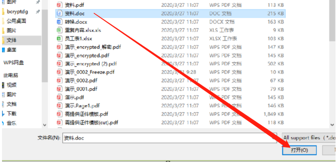 2.点击添加文件按钮之后在打开的选择文件界面中,我们选中想要转换的Word文件之后点击右下角的打开按钮即可。