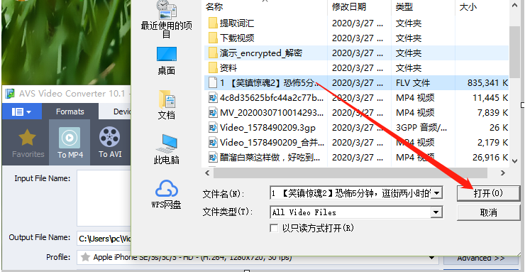 2.点击添加文件之后,我们在出现的选择文件界面中,选中目标视频文件之后点击界面右下角的打开按钮即可。