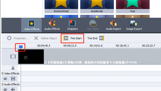 4.进入到编辑视频的界面之后我们就可以在界面下方看到视频进度条了,然后我们点击移动指针,并点击Trim Start按钮即可选择开始时间。