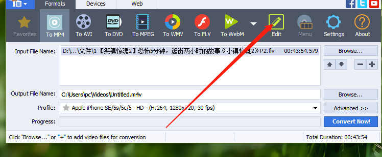 3.点击打开按钮之后在软件界面中就可以看到添加进来的视频文件了,然后我们点击上方的Edit这个编辑功能图标。