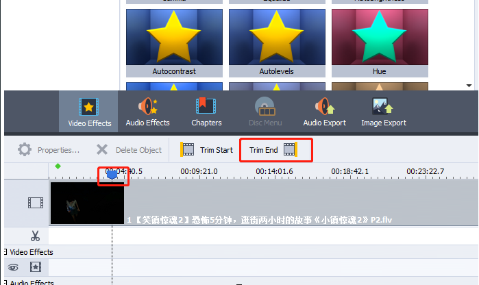 5.下一步我们移动指针到想要剪切的结束时间之后点击Trim End按钮即可选择结束时间。