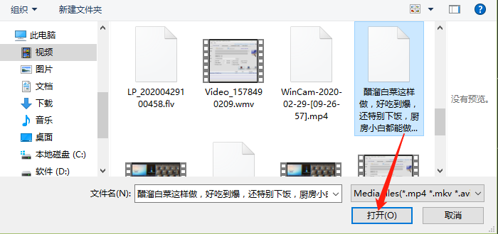 2.点击这个添加文件选项之后,下一步会打开一个选择文件的界面,在选择文件的界面中我们选中目标文件之后点击打开按钮。