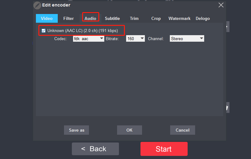 7.点击这个OK按钮之后回到转换操作界面,点击界面下方的Start开始按钮就可以完成音频编码格式的设置了。