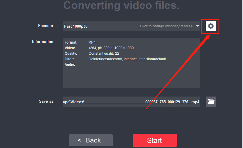 4.进入到下一步界面之后就是转换的操作界面了,我们需要点击其中的齿轮图标,点击之后打开设置界面。