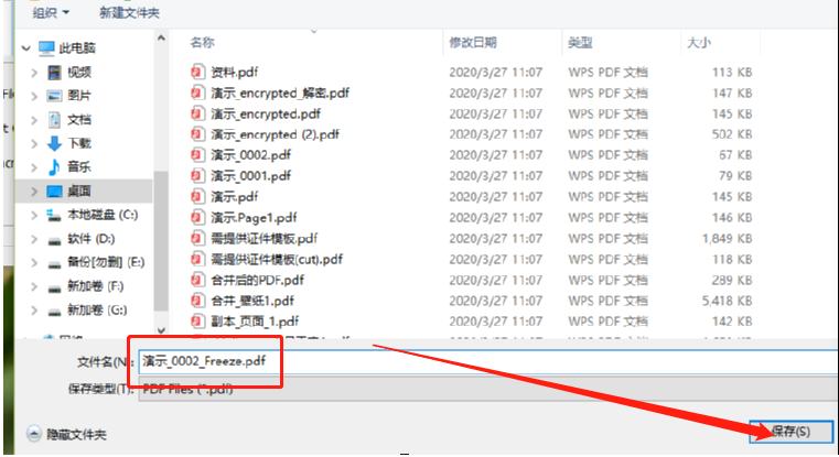 6.点击上方的Freeze按钮之后会出现一个文件另存为的界面,也就是加密之后的文件储存在哪里,我们选择好储存位置以及设置好名称之后点击保存按钮即可加密保存文件。