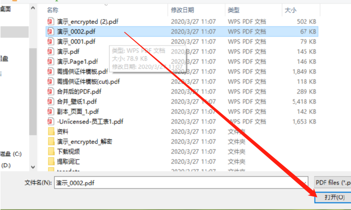 2.点击Browse按钮之后就会出现一个选择文件的界面了,在这个界面中我们选中目标PDF文件之后点击右下角的打开按钮即可。