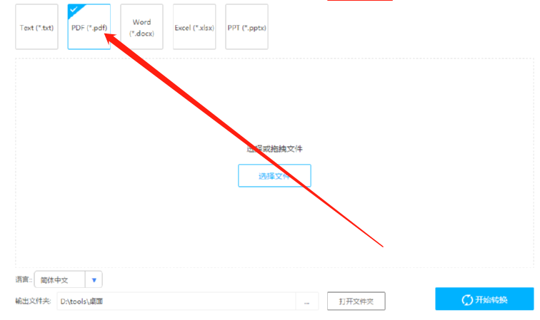 1.首先第一步我们打开软件之后点击界面上方的OCR这个功能按钮,然后选择PDF这个功能选项并点击选择文件。