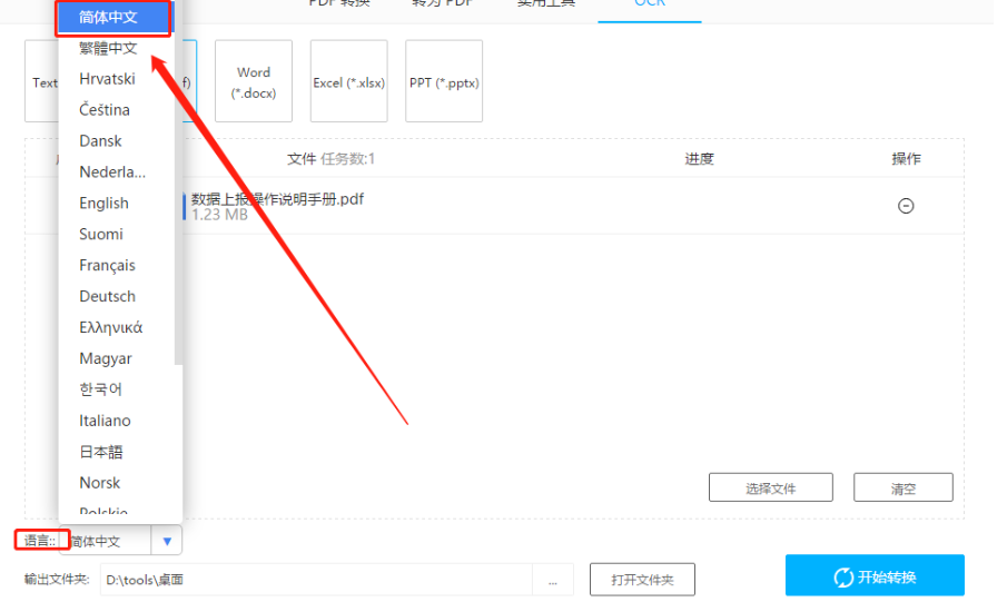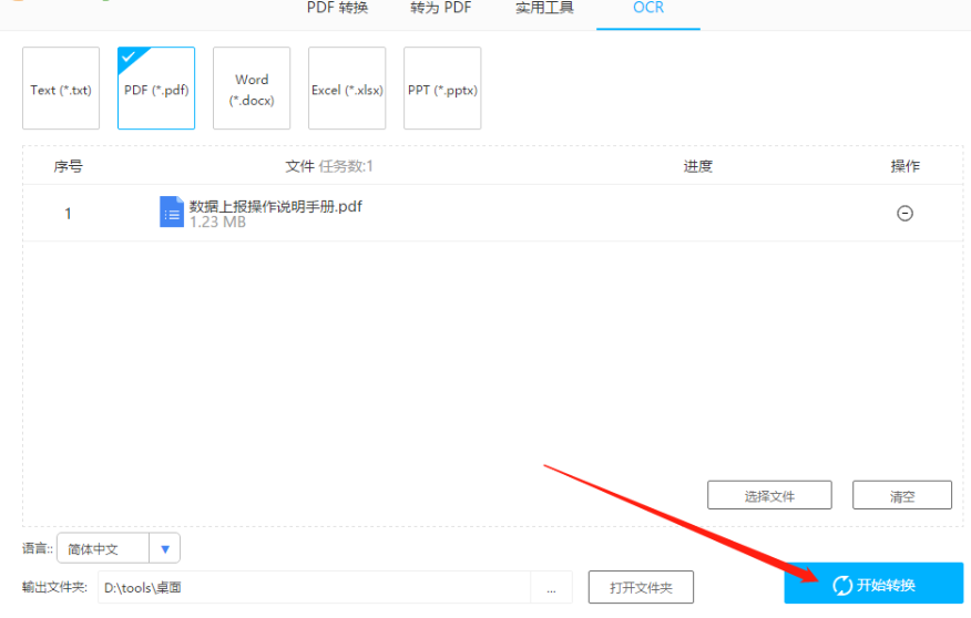 5.最后一步我们在设置好这些数据之后点击界面右下角的开始转换按钮就可以开始转换识别内容的操作了。