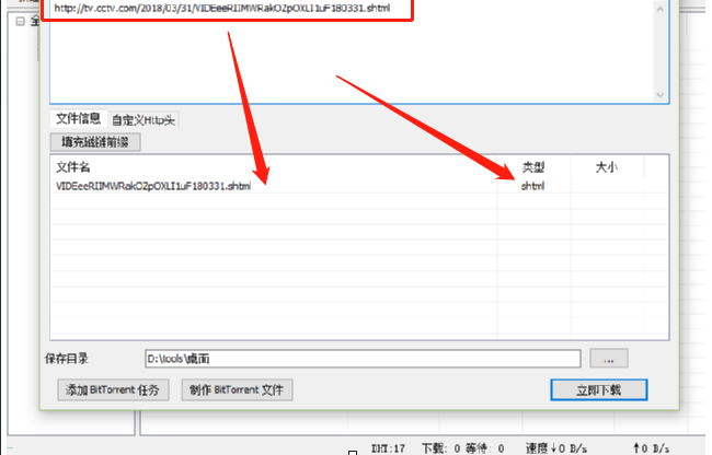 2.点击新建任务之后就会出现一个添加下载任务的界面了,我们在界面中输入想要下载的网页链接,输入之后它会自动分析文件名和类型。