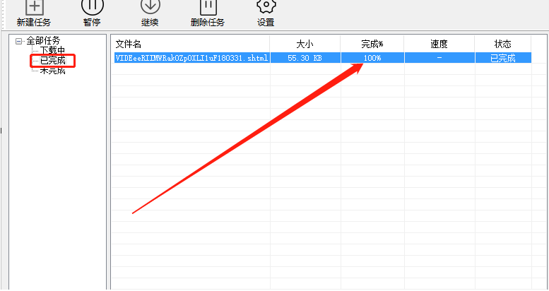 4.点击确定按钮之后就可以点击界面中的立即下载按钮了,等到下载完成之后在软件的已完成列表中就可以看到下载好的文件。