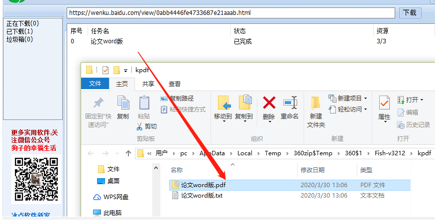 5.双击任务列表之后就会打开保存下载文档的界面了,有PDF文档类型和TXT文档类型的文件,双击打开即可查看下载文档的内容。