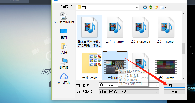 2.点击添加文件按钮之后会打开一个选择文件的界面,在这个界面中我们选中目标文件之后点击右下角的打开按钮。