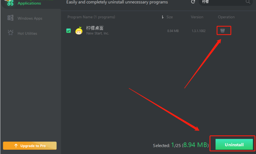 3.我们搜索到想要卸载的程序之后勾选它,点击后面的垃圾桶图标或者是右下角的Uninstall这个按钮都可以进行卸载操作。