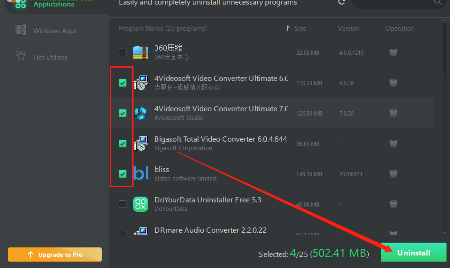 5.另外如果用户想要一次性卸载多个程序的话,在主界面中勾选想要卸载的程序之后点击右下角的Uninstall按钮就可以进行批量卸载。