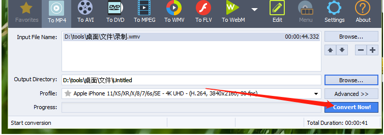 5.选择好视频输出储存位置以及设置好转换视频的格式之后,下一步我们就可以点击界面右下角的Convert Now!这个按钮来开始转换操作了。