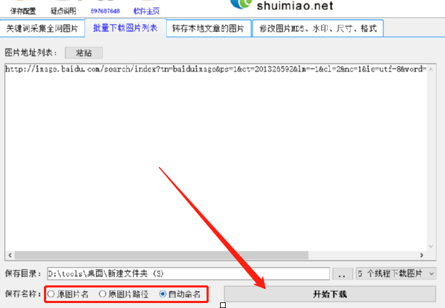 4.设置好输出路径之后,下一步我们在保存名称这里可以选择保存图片的名称命名方式,选择之后点击开始下载按钮即可。