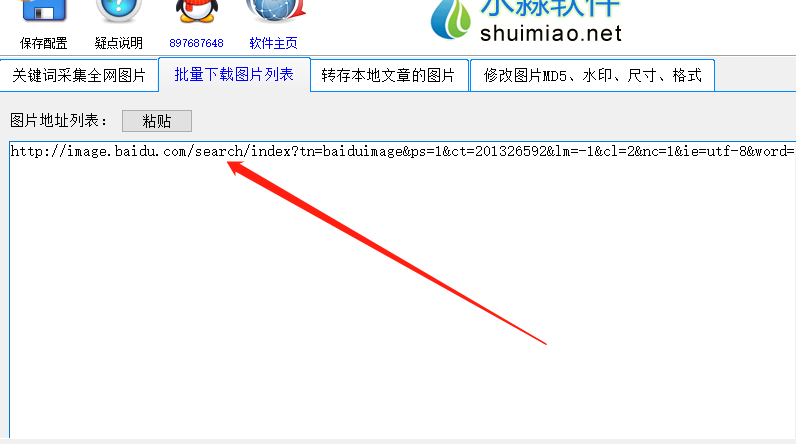 2.切换到这个功能界面之后,我们就将自己想要下载图片的网页链接复制到输入框里面,也就是图片地址列表,有多个链接的话每一行粘贴一个链接即可。