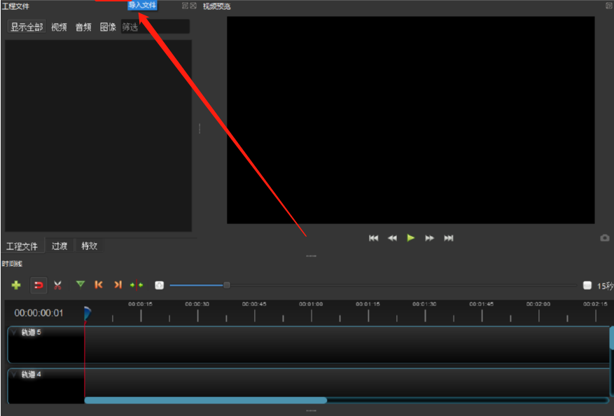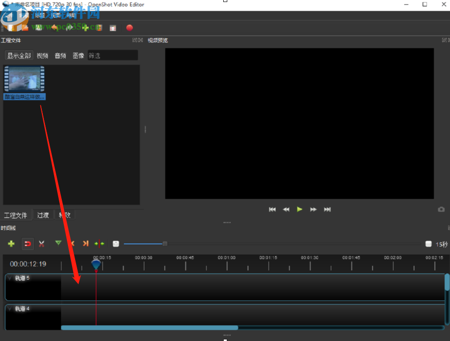 3.点击打开按钮之后我们在软件界面就可以看到添加进来的视频了,需要选中视频将它拖动到下方的轨道中,方便查看添加效果之后的样子。