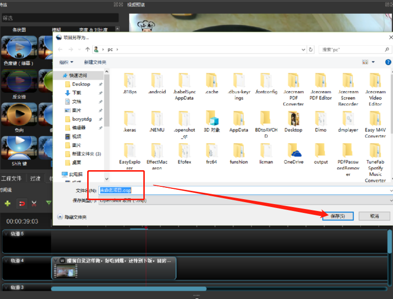 6.最后我们按下键盘的Ctrl+S保存快捷键,然后在出现的保存项目界面中,设置保存项目的名称之后点击保存按钮就可以成功保存特效修改了。