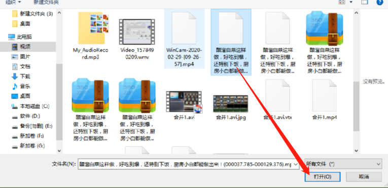 2.点击导入文件之后,在下一步出现的选择文件界面中,我们选中想要处理的视频文件之后点击右下角的打开按钮。