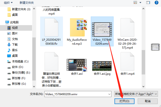 2.点击添加按钮之后下一步在出现的选择视频界面中选中想要剪切的视频文件之后点击下方的打开按钮。