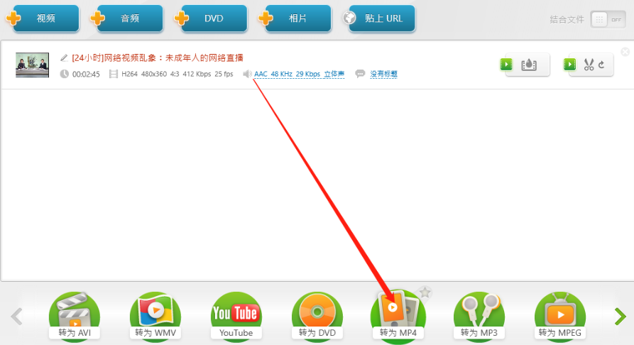 6.剪切完成之后不需要转换格式的用户在下方的转换功能中选择与视频相同的格式,需要转换格式的用户选择自己想要转换的格式点击即可。
