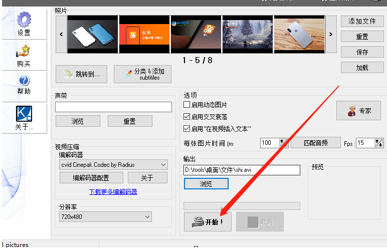 5.点击保存按钮之后我们回到软件的主界面中,就可以点击界面下方的开始这个功能按钮开始将图片制作成视频文件了。