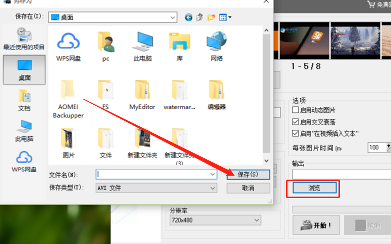 4.紧接着下一步我们在软件界面中点击浏览按钮之后在出现的界面可以选择视频文件制作完成之后的输出保存位置,选择之后点击保存按钮。
