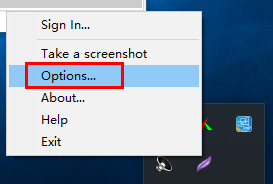 2、我们可以鼠标右击托盘(任务栏)上的Lightshot图标,我们在其中选择“options”。