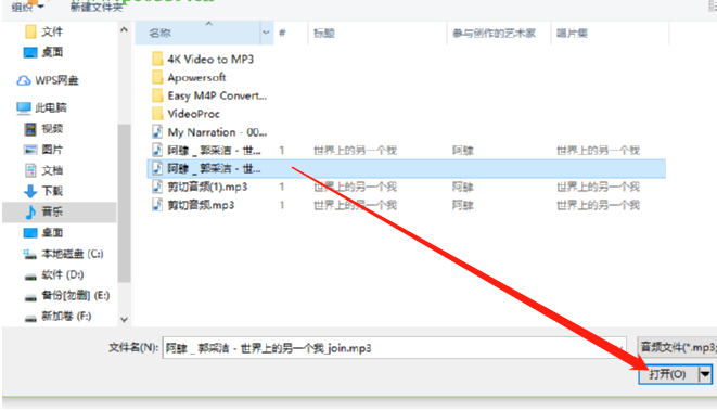 3.点击添加之后紧接着会出现一个选择文件的界面,在这个界面中我们选中要进行变速处理的音频文件之后,点击右下角的打开按钮。
