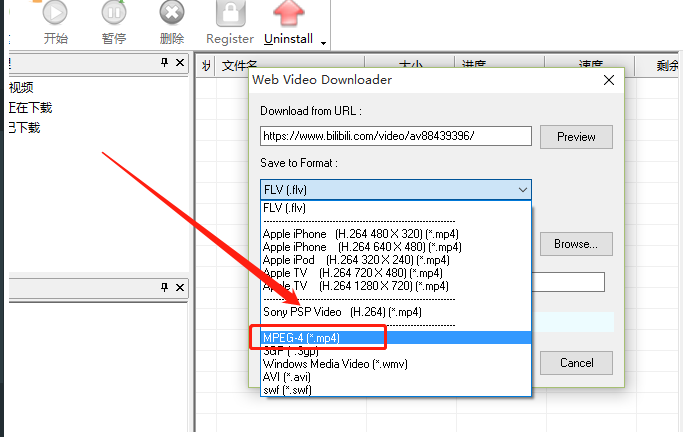3.将视频的网页地址复制到软件界面之后,下一步就可以选择下载视频文件的格式了,打开选择格式的下拉列表之后选择自己想要的格式即可。