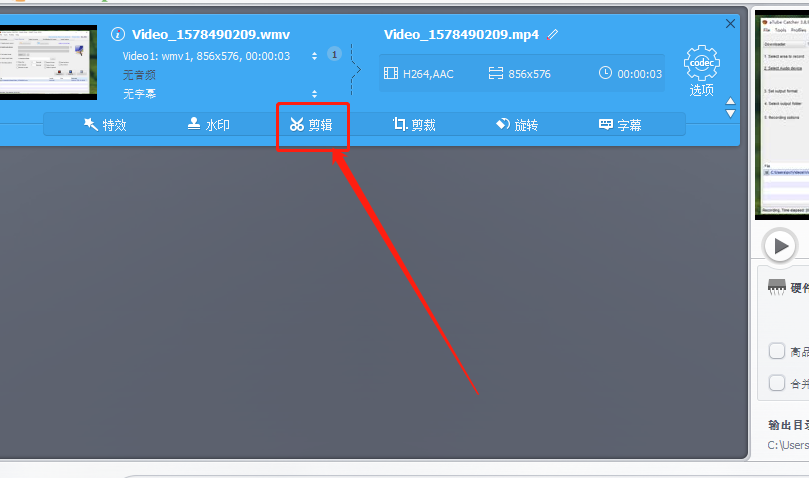 4.点击打开按钮我们就可以将视频文件添加到软件界面了,然后我们在软件界面的视频列表下方点击剪辑这个功能选项。