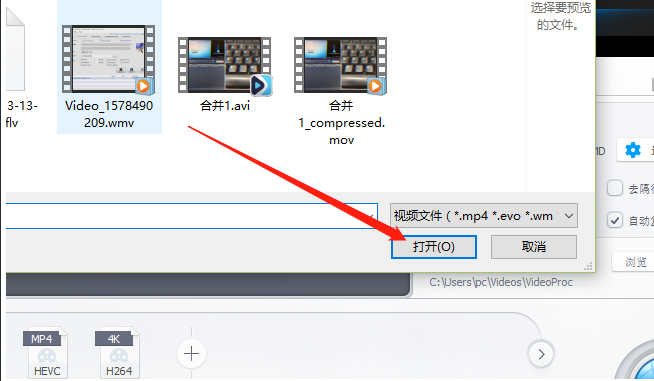 3.点击添加视频文件之后,下一步就会打开一个选择文件的界面了,我们在这个界面中选中要剪切的视频之后点击右下角的打开按钮。